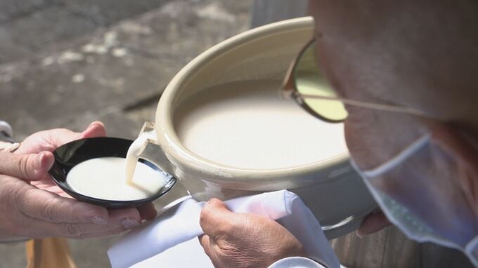 (参拝者)「味は美味しい、あとからきくねぇ」「きょうはまだ3杯目。通常は30杯いきます」「地域の皆さんで頑張ってもらって、五穀豊穣を願ってこうやって美味しいお酒を振舞ってもらえて、とても感謝しています」