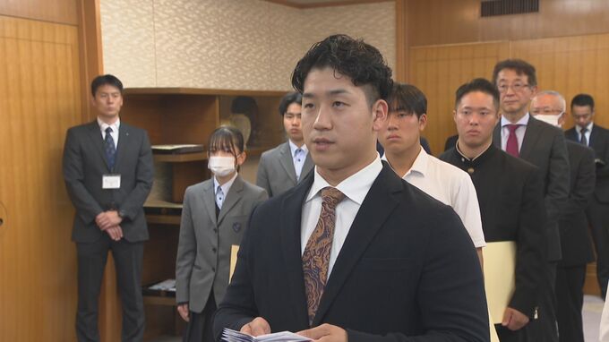 県民表彰が贈られたのは16人です。ことしは国民スポーツ大会で高校生の活躍が目立ち、ライフル射撃の由布高校・秋吉柚奈選手と秦鳳真路選手、テニスの大分舞鶴高校・安藤大和選手と太田周選手、ウエイトリフティングの宇佐高校・三宮叶夢選手がそれぞれ優勝を果たしました。