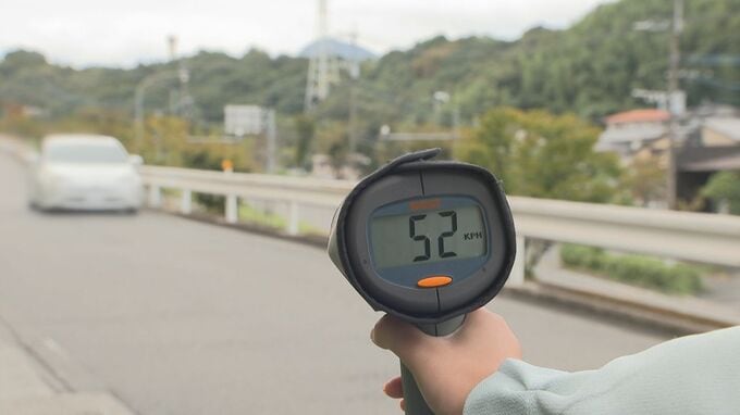 実際に大分インター付近の生活道路で車の速度を計測していました。すると、多くの車が時速30キロ以上で走行し、最大で52キロに達する車も確認しました。