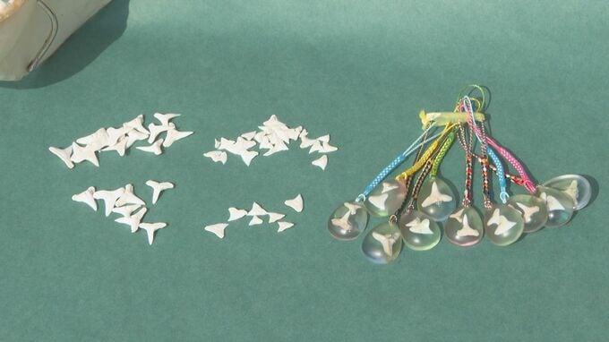 また、サメの歯はスタッフが手作りのアクセサリーにして販売しています。