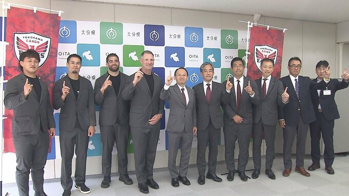 ジャパンラグビーリーグワンで大分を第2拠点とする横浜キヤノンイーグルスの選手らが県庁を訪問し、今シーズンの活躍を誓いました。
