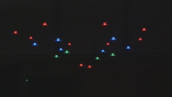 今回初めて公開されたのはドローンショー。県内企業が最先端のプログラミング技術を駆使し、20機の機体を音楽に合わせて数センチ単位で飛行させました。