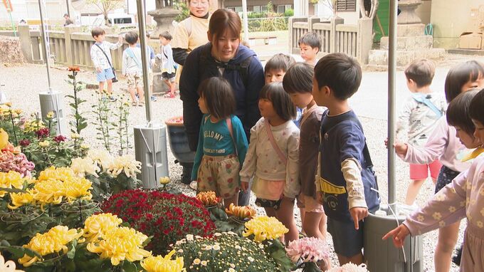 保育園の園児たちも会場を訪れ、菊の花を楽しんでいました。