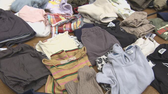(訪れた人)「ちょっと大きめの服で、来年の夏に着れるものやきれいなものがたくさんありました」「今年の冬、初めて80センチを着るので、冬用のモフモフした服があって助かりました」「三つ子なのでいろいろ物を買うのにも結構かかるので、靴下3点いただきました」