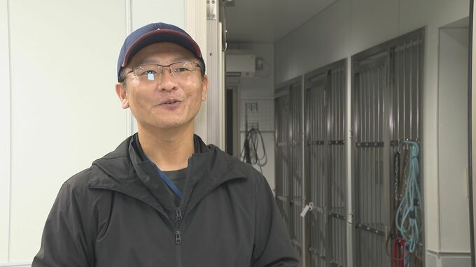 アローとロッキーは3人の指導士が担当。なかでも今年度から担当になった合澤徹朗係長は、警察犬係になるため3年前から自宅で小型犬を飼い始めました。