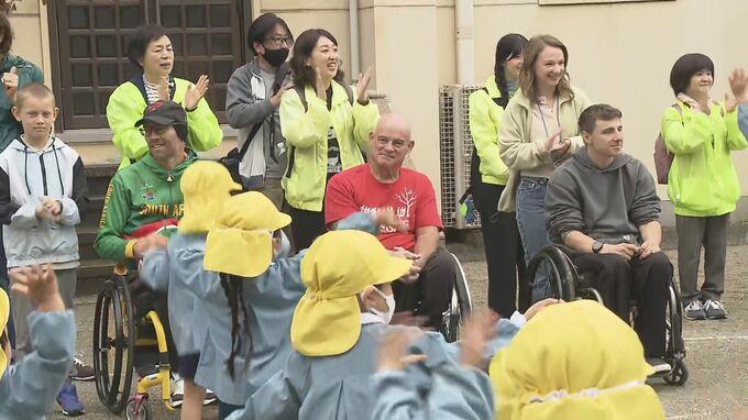 16日に行われる大分国際車いすマラソンに出場する海外選手が、大分市の幼稚園を訪れ、子どもたちとの交流会が開かれました。