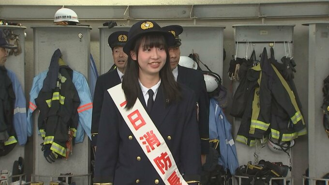 この活動は秋の全国火災予防運動に合わせて別府市消防本部が実施しているものです。は台湾出身のミス別府、リン・ツーシュエンさんが一日消防長に任命され、委嘱状とタスキが渡されました。リンさんは署員の服装を点検したあと、消防の指令車で市内をパトロールし、火災予防を呼びかけました。