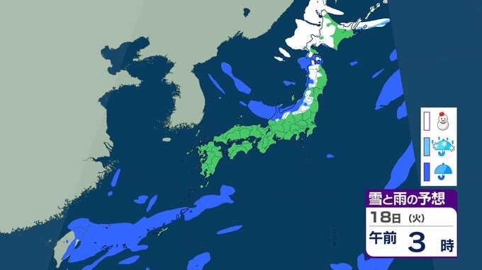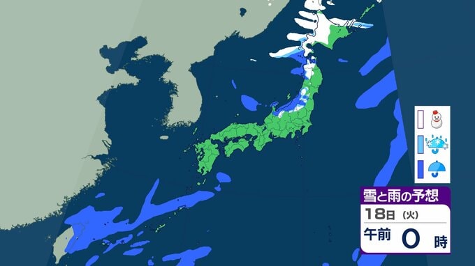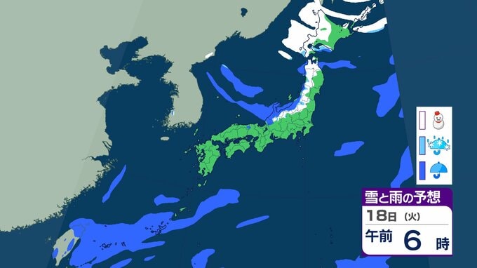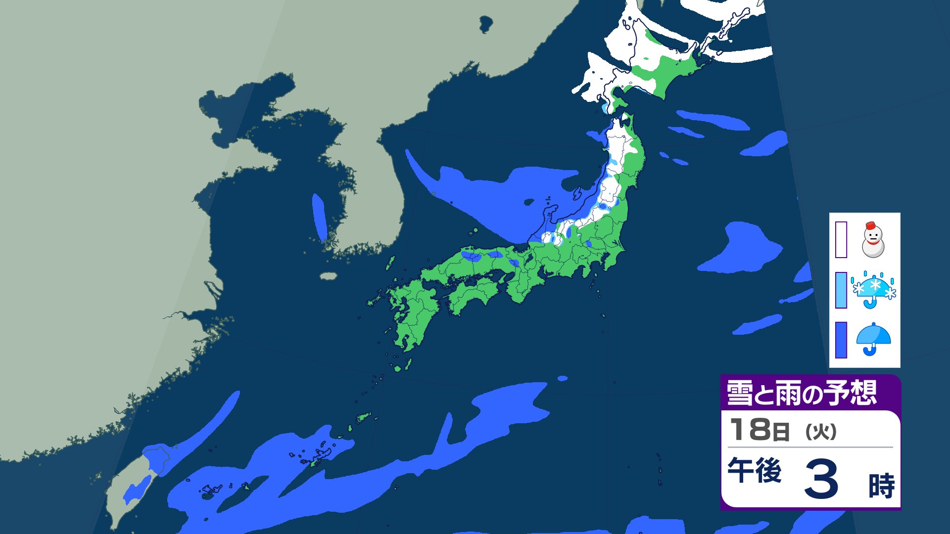 今季一番の強い寒気南下、北日本で荒天 九州の山地でも積雪のおそれ 19日にかけて交通障害などに警戒【雨雪シミュレーション】