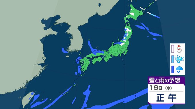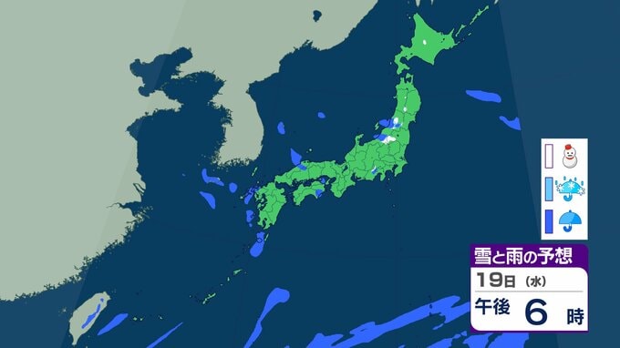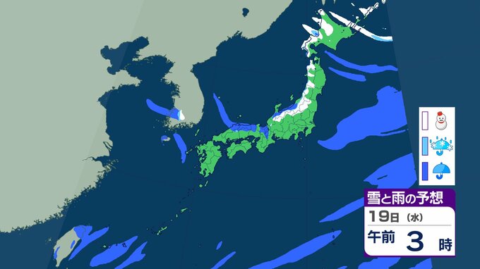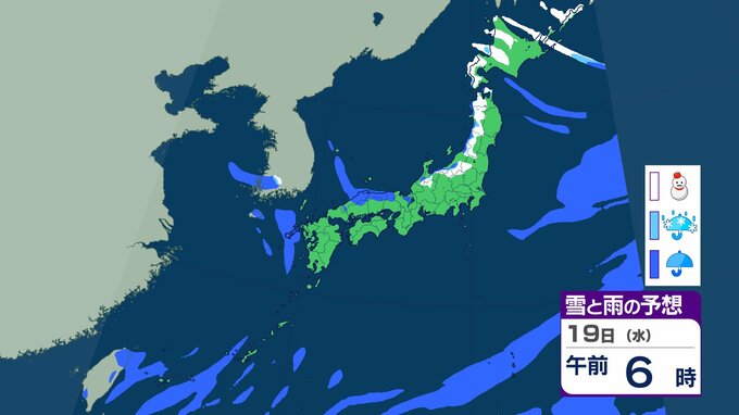 今季一番の強い寒気南下、北日本で荒天 九州の山地でも積雪のおそれ 19日にかけて交通障害などに警戒【雨雪シミュレーション】