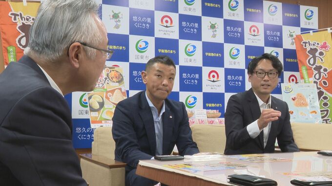 大分県国東市特産の「姫だこ」を使った新商品のおにぎりが、県内のコンビニで発売されることになり、関係者が19日に市役所で完成を報告しました。