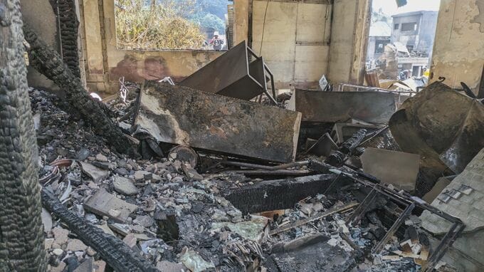 避難所で生活している女性は「何もない」と現場の様子を表現。警察の調査に同行し、規制線内に入った際に撮影した画像には、密集した住宅地で焼け崩れた家屋が映し出され、被害の深刻さがうかがえます。