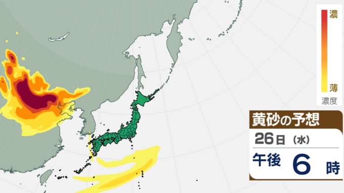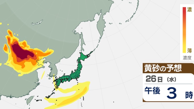 【黄砂情報】27日午後~28日早朝にかけて西日本を中心に飛来 黄砂シミュレーション