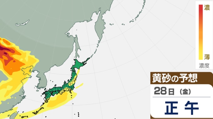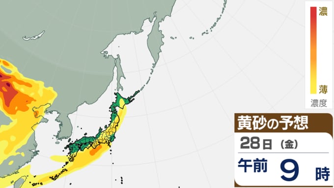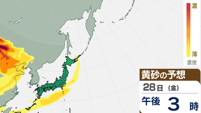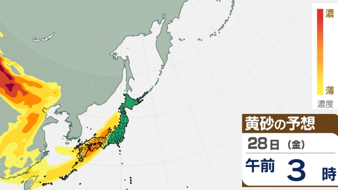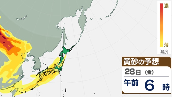 【黄砂情報】27日午後~28日早朝にかけて西日本を中心に飛来 黄砂シミュレーション