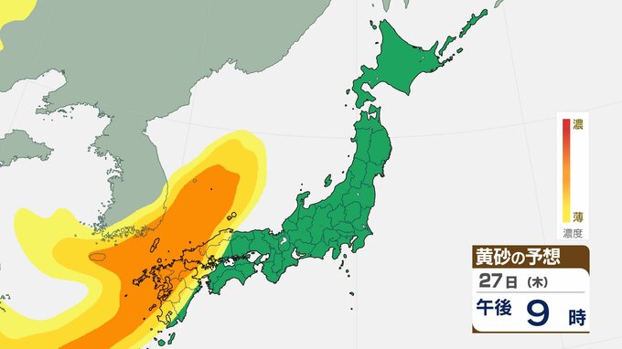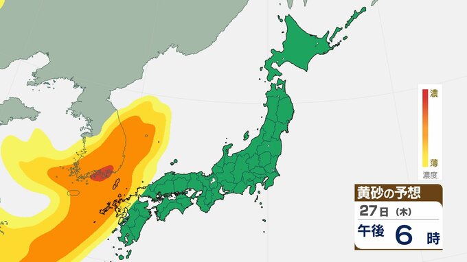 【黄砂情報】27日午後から28日にかけて西日本・東日本の広範囲に黄砂予想 視程悪化や交通影響のおそれ【27日~30日までの黄砂シミュレーション】