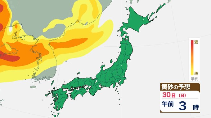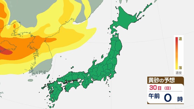【黄砂情報】27日午後から28日にかけて西日本・東日本の広範囲に黄砂予想 視程悪化や交通影響のおそれ【27日~30日までの黄砂シミュレーション】