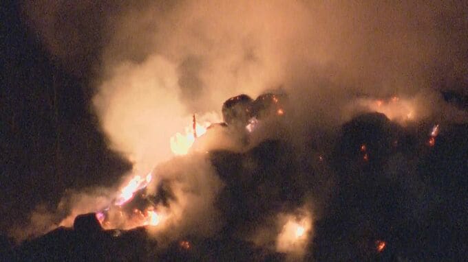 牛のエサ保管倉庫が全焼 竹やぶにも延焼 約5時間後に鎮火 大分・日出町 2025年11月28日(金) 12:42 国内 27日夜、大分県日出町で牛のエサのわらを保管している倉庫が全焼し、近くの竹やぶの一部にも燃え移り火事がありました。火はおよそ5時間後に消し止められ、けが人はいませんでした。27日午後7時半ごろ、日出町南畑…