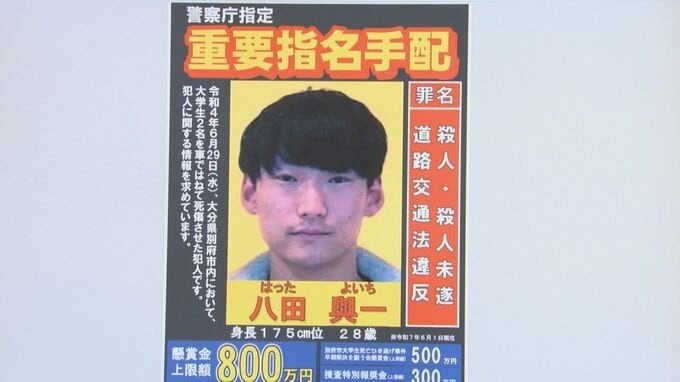 八田容疑者は2022年6月、別府市の県道で停車中のバイクに軽乗用車で追突し、大学生2人を死傷させ現場から逃走した疑いが持たれています。
