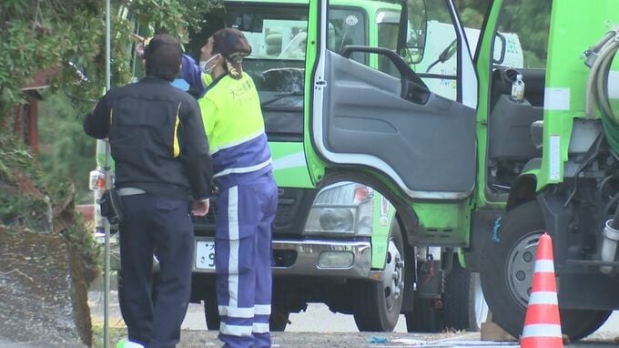 警察によりますと、現場にいたのは60代と40代の男性2人のみで、バキュームカーで作業をしていたとみられています。現場の道路にはわずかな傾斜があり、何らかの要因で車両が動き出して、前方から巻き込まれた可能性があるということです。