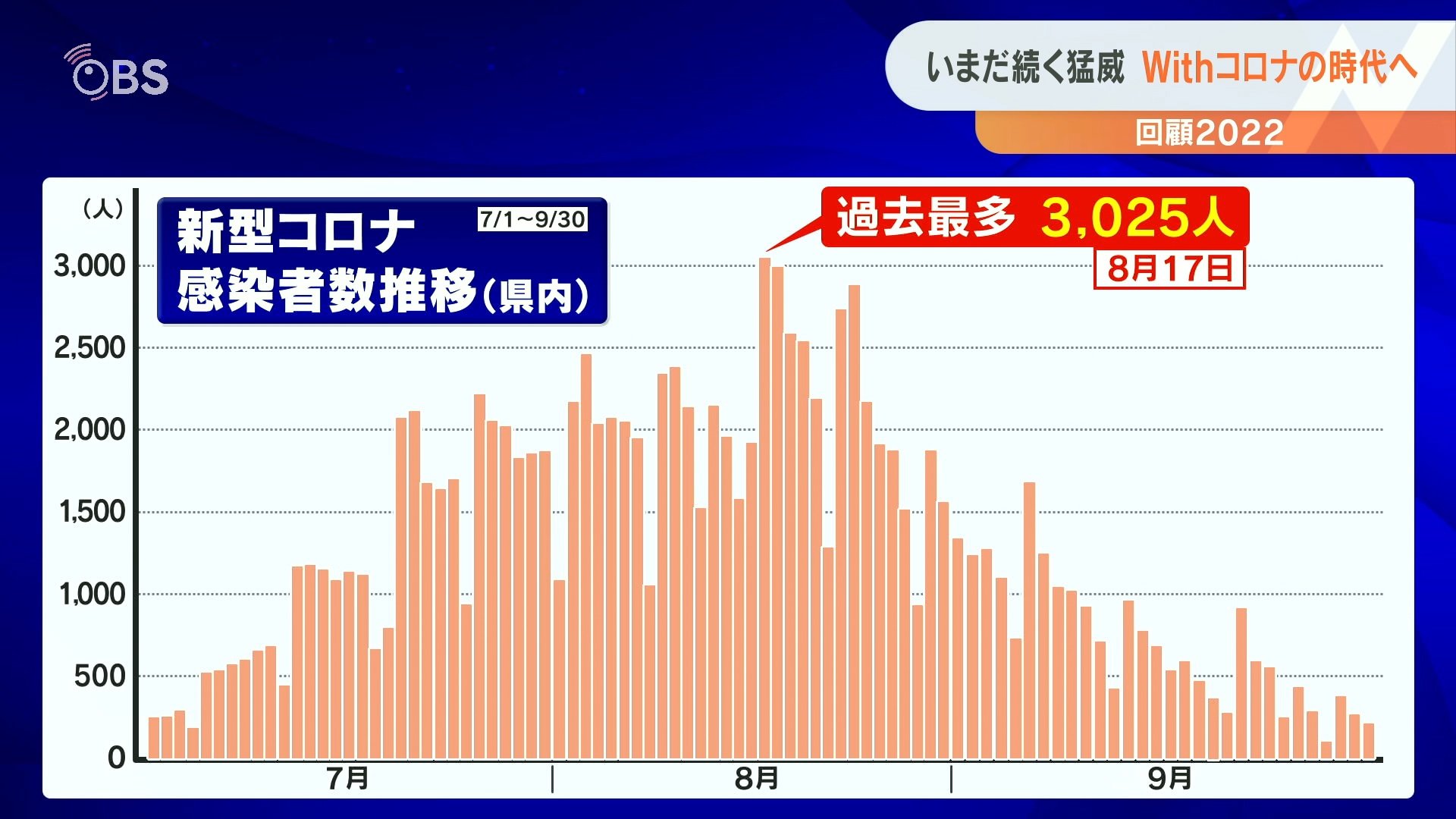 オミクロン株が亜種の「BA.5」に置き換わったことで、7月以降、感染者が爆発的に急増。“第7波”の到来です。8月17日には県内で過去最多となる3025人の陽性者が確認されました。