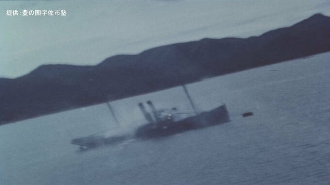 映像には、港に停泊した小型船が機銃掃射を受ける様子が記録されています。これは終戦のおよそ半月前、現在の国東市・安岐漁港が米軍戦闘機による空襲を受けた場面です。