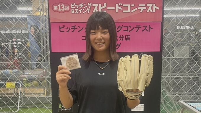 今年、全国の小中学生を対象に実施された「ピッチング&スイングスピードコンテスト」で、大分市立南大分中学校3年の岩坂心珠さんが、中学生女子の部で全国トップの成績を収めました。圧倒的な記録を叩き出した次世代のスター候補に、その努力と未来への夢を聞きました。