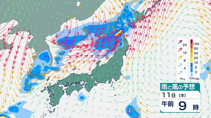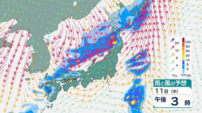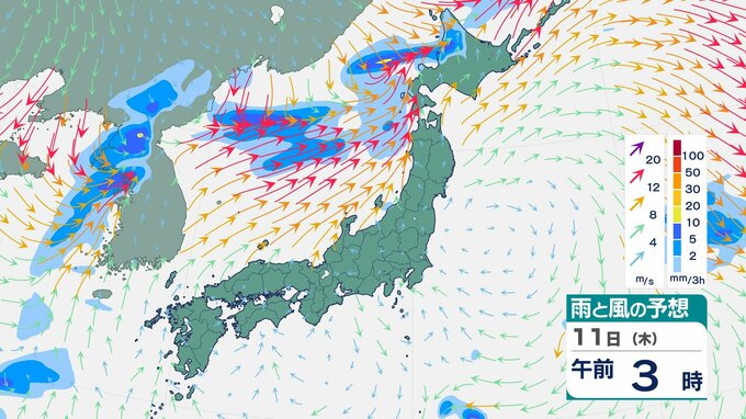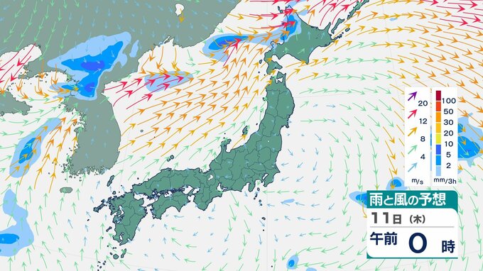 近畿・中国・四国・九州北部地方で「10年に1度レベル」の高温予想 17日ごろから季節外れの暖かさに 気象庁が早期天候情報発表 2025年12月9日(火) 14:55 国内 天気 雨と風のシミュレーション(11日)