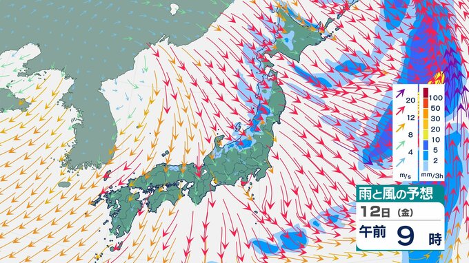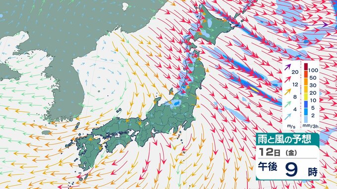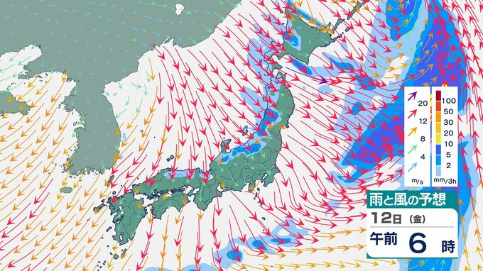 近畿・中国・四国・九州北部地方で「10年に1度レベル」の高温予想 17日ごろから季節外れの暖かさに 気象庁が早期天候情報発表 2025年12月9日(火) 14:55 国内 天気 雨と風のシミュレーション(12日)