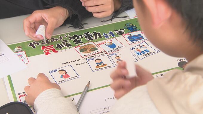 (児童)「地球温暖化が進んでいるから電気とかをこまめに消す」「未来につながる様にマイボトルを使う」