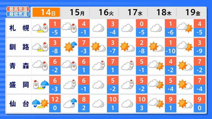 ほぼ日本全域で、10年に一度程度しか起きないような著しい高温になる可能性 12月18日頃~25日頃 気象庁が「早期天候情報」発表 2025年12月12日(金) 16:59 国内 天気 北海道~東海の天気予報と最高・最低気温