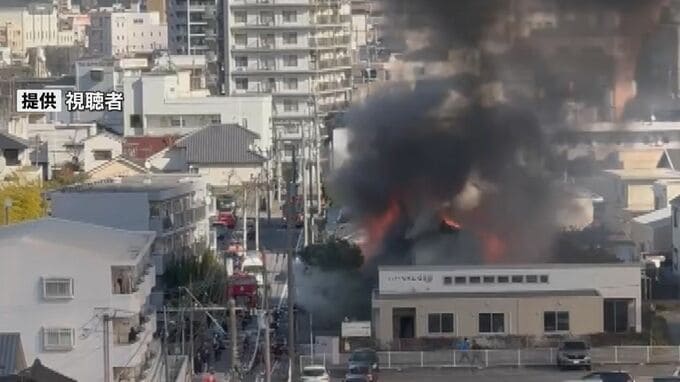 建物から吹きあがる黒い煙と真っ赤な炎。12日午後、大分市の住宅街で火災が発生し焼け跡から1人が遺体で見つかりました。
