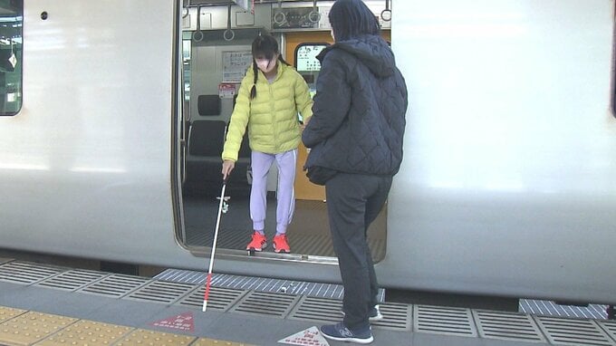 JR大分駅で視覚障害のある子どもたちにホームの点字ブロックや、バリアフリー設備について知ってもらう体験会が開かれました。