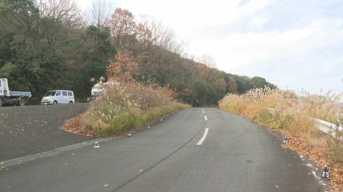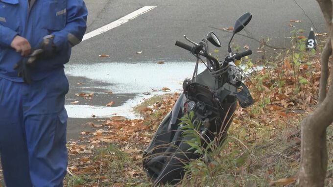 現場は片側1車線のゆるやかなカーブです。バイクが反対車線にはみ出した可能性もあるとみて、警察が事故の原因を調べています。