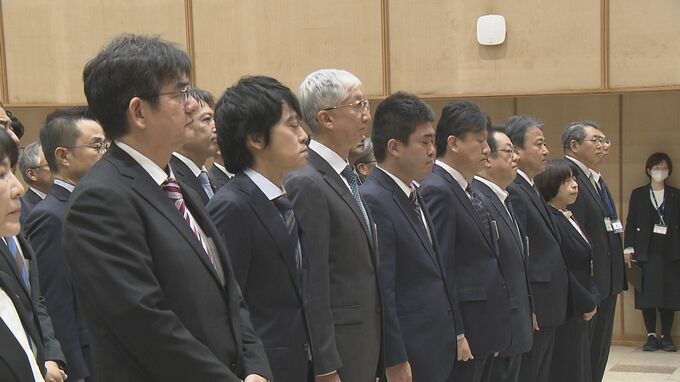 県庁で行われた仕事始め式には、県の幹部職員およそ130人が出席しました。職員を前に佐藤知事は、去年11月に大分市佐賀関で発生した大規模火災について触れ、市と連携し、地域コミュニティの維持にむけた取り組みを続けるよう訓示しました。