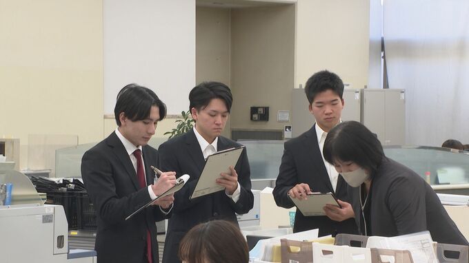 一日支店長に任命されたのは、県内外の大学や短期大学に通う学生6人です。学生たちは朝礼や会議に出席したほか、午後からは取引先の企業を訪問し、担当者と融資について実際に話し合う業務を体験します。