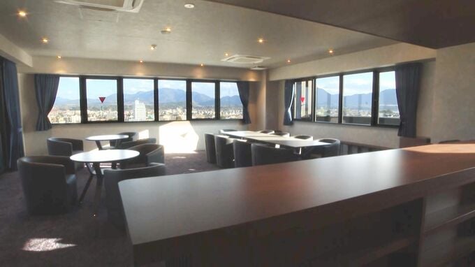 ホテルは8階建てで、スイートルームや和室、ダブルルームなど、7タイプ・93部屋を用意。7階の展望ラウンジからは由布岳や御許山(おもとさん)が一望できます。