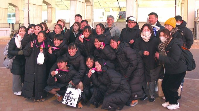 チーム発足26年目での全国初制覇。選手たちは大分から駆けつけた300人の応援団と喜びを爆発させました。小学生の頃から一緒に戦い、チームを支えてきたキャプテンとエース。最後の試合を有終の美で飾りました。