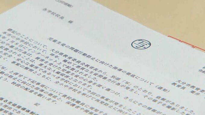 大分市内の中学校で撮影された生徒の暴行動画がSNSで拡散された問題を受けて、13日、臨時の校長会が開かれました。
