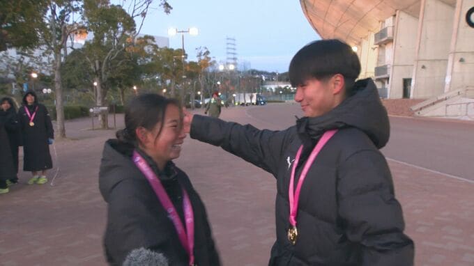 高校卒業後、松田はなでしこリーグ1部の伊賀FCくノ一三重に内定。一方、キャプテンの田淵は、大学女子サッカー選手権で2回目の優勝を果たした山梨学院大学へ進学予定。小学校から過ごしてきた7年間、ともに歩んできた2人は、目に涙を浮かべながら互いへの感謝を語った。
