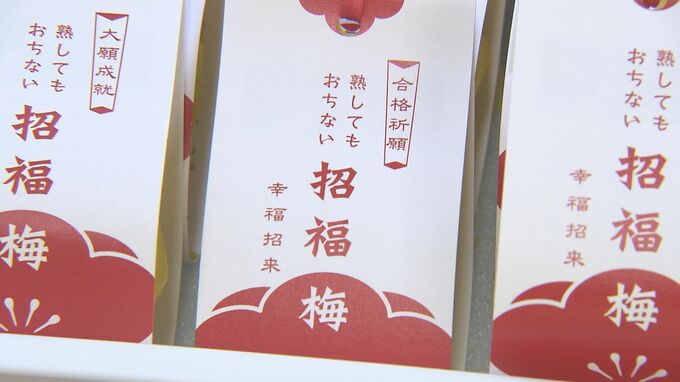 この取り組みは、大分市の「道の駅のつはる」が、高校受験を控えた中学生を応援しようと、6年前から行っているものです。木に実ったまま落ちずに熟す日田産の招福梅を6年前から贈っています。