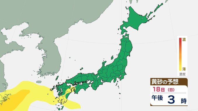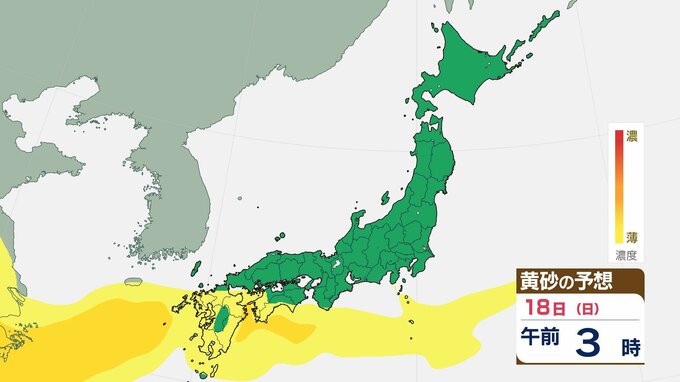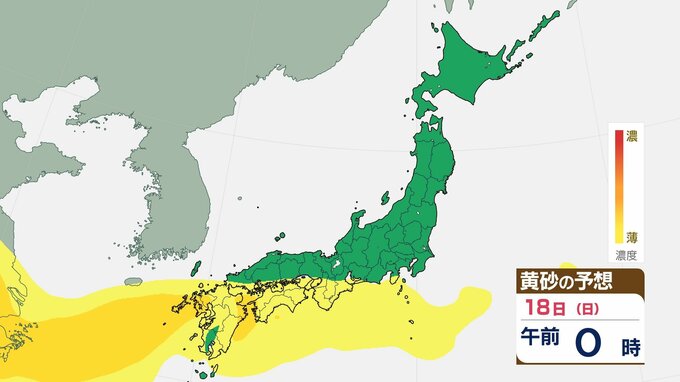 【黄砂情報】15日から18日にかけ東北・関東甲信・北陸・東海・近畿・中四国・九州の広範囲に影響か 視程低下や交通影響のおそれ【最新黄砂シミュレーション】