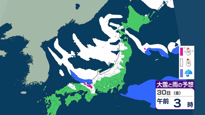 【関東でも、雪か】東北地方と東日本~西日本の日本海側を中心に大雪の見込み【雪のシミュレーション掲載】気象庁 29日~30日予想降雪量 北陸70センチ 東海40センチ 近畿50センチ(~午後6時・多い所)東日本~西日本の太平洋側で大雪になる所も|TBS NEWS DIG