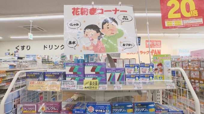 大分市明野のドラッグストアでは、去年同様、例年より1週間ほど早い1月末からコーナーを設置していて、すでに症状を訴えて薬を買い求める人が来ているといいます。