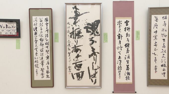 詩や和歌などを引用して自らの思いを漢字やかな、調和体で表現した作品を来場者がじっくりと観賞していました。このうち西村桃霞さんの作品は、長嶋茂雄監督が生前に残した言葉を筆を2本使い力強く表現しています。