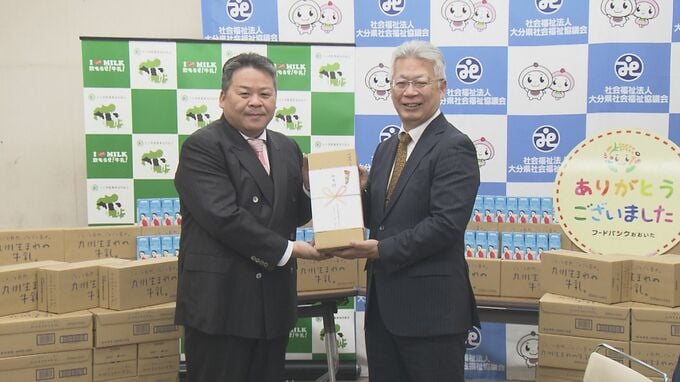 贈られたのは、常温で3か月間保存ができるロングライフ牛乳です。フードバンクおおいたは、県内およそ20か所の子ども食堂や、市町村の窓口で相談に訪れた生活困窮家庭に届けることにしています。