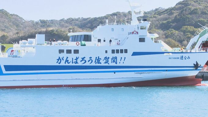 佐賀関と愛媛県を結ぶ国道九四フェリー。「速なみ」と名づけられた船体には、縦2メートル、幅16メートルに及ぶ復興へのエールが刻まれています。