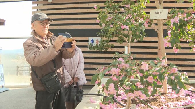 寒さの中で凛と咲き、光沢のある葉と色鮮やかな花が特徴のツバキ。杵築市山香町の大分農業文化公園「るるパーク」では、およそ450品種が植えられていて、2月14日から恒例の椿まつりが始まりました。