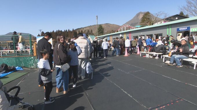 大分県内各地の観光地は、2月とは思えない季節外れの暖かさに包まれ、多くの行楽客で活気づきています。連休最終日となった23日、別府市の城島高原パークでは、今シーズンの営業を終えるスケート場で長蛇の列ができました。