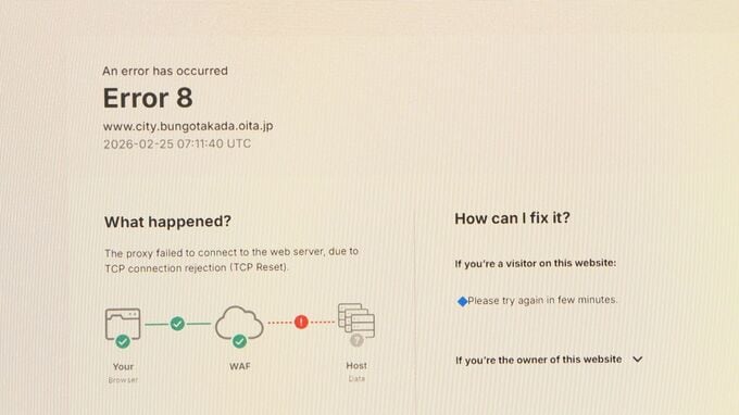 大分県内の3つの自治体でホームページが、25日昼過ぎから接続できない状態になっていて、システムを管理する愛媛県の会社が復旧を急いでいます。