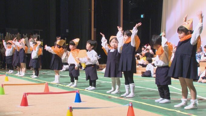 年少から年長まで177人がきょうステージに立ってこれまで練習を重ねてきた歌やダンス、バトントワリング、竹馬などを披露しました。子どもたちの懸命な姿を保護者らおよそ700人が見守り、温かい拍手が送られました。