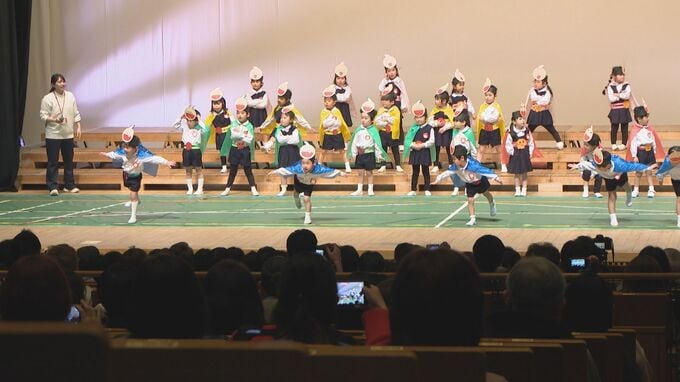 大分市の千代町幼稚園では、1年間で成長した園児の姿を保護者にみてもらおうと、毎年この時期にお楽しみ会を開いています。